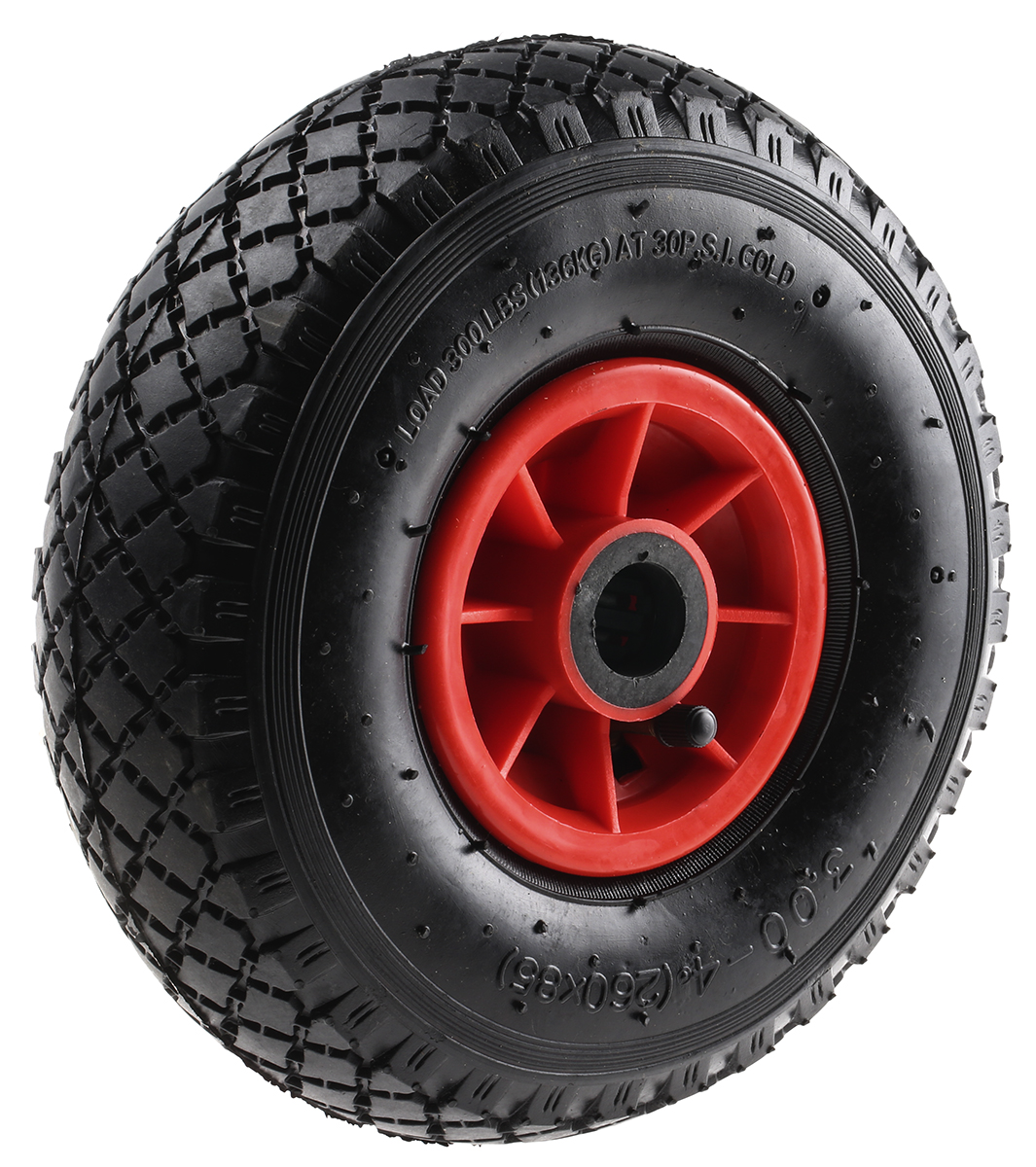 Kółko do wózka, Pneumatyczne, Guma, Czarny, Czerwony, obc.: 150kg, śred.: 260mm, szer.: 85mm