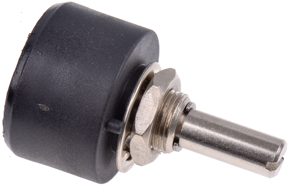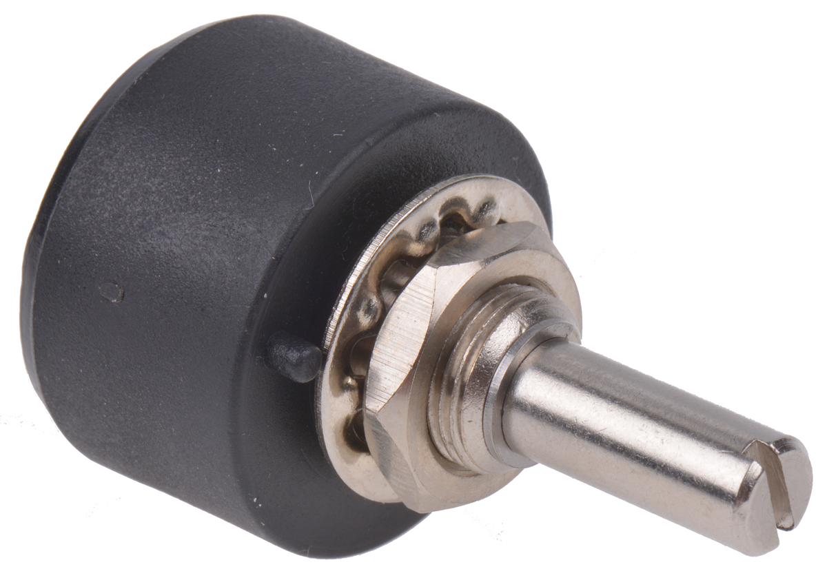 12. Potencjometr z przewodem nawojowym 10Ω RS PRO średnica wału 6,35 mm 1W długość wału 25mm średnica 25.4mm Montaż panelowy 10.70 x50