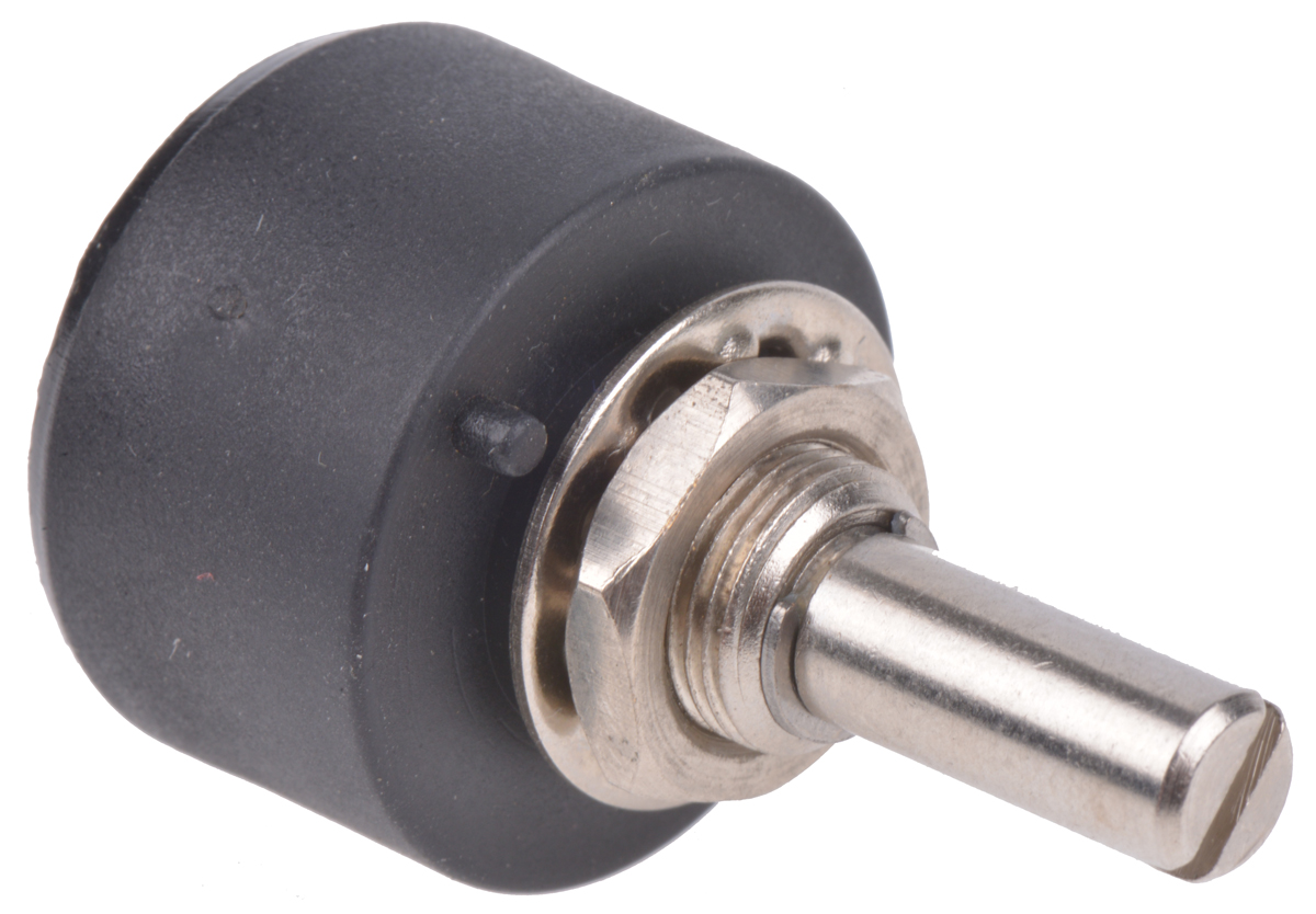 4. Potencjometr z przewodem nawojowym 1kΩ RS PRO średnica wału 6 mm 1W długość wału 25mm średnica 25.4mm Montaż panelowy 9.82 x50