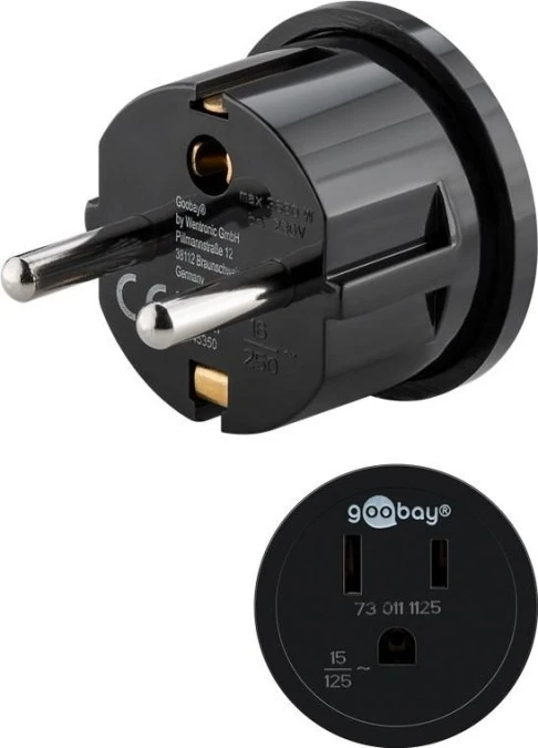 Przemiennik zasilania kraj 1 Europa kraj 2 USA 10A złącze 1 Wtyczka europejska złącze 2 NEMA 5-15 typ: Przetwornik,