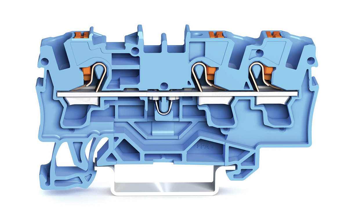 6. Blok zacisków przelotowych WAGO poziomy: Pojedynczy 22 → 12AWGWciskany zacisk Cage Clamp TOPJOB S, 2102 raster: 297.19