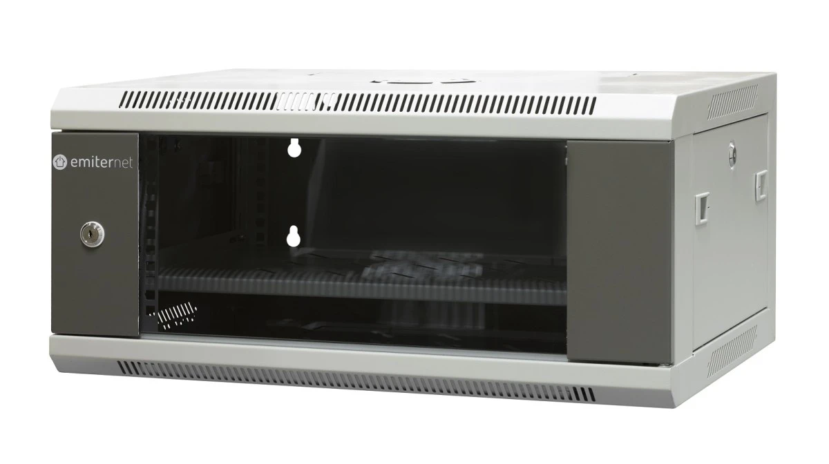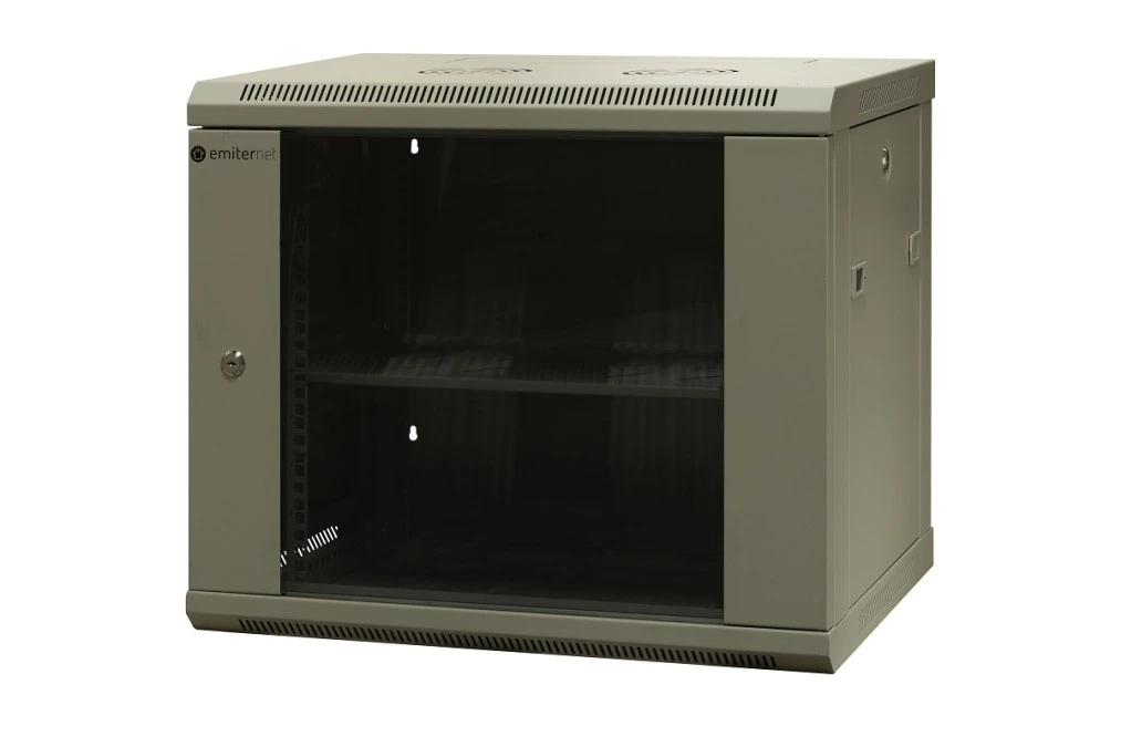 Szafa wisząca niedzielona 10 9U, drzwi blacha, 325×330x445 (szer./gł./wys. mm) RAL: szafa 7044, w komplecie półka i komplet 6