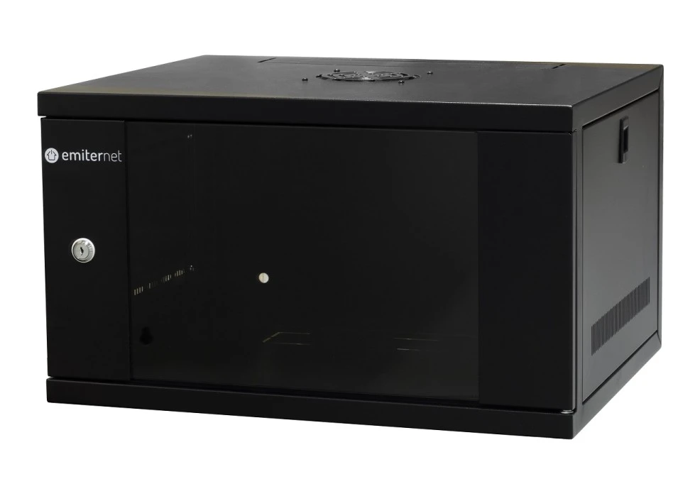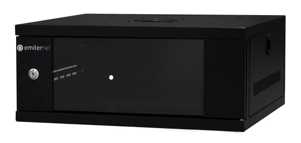 4. Szafa wisząca lekka niedzielona 19 6U, drzwi blacha/szkło, ściągane osłony boczne, 550×450×320 szer./gł./wys. mm RAL: 9004, w 216.41