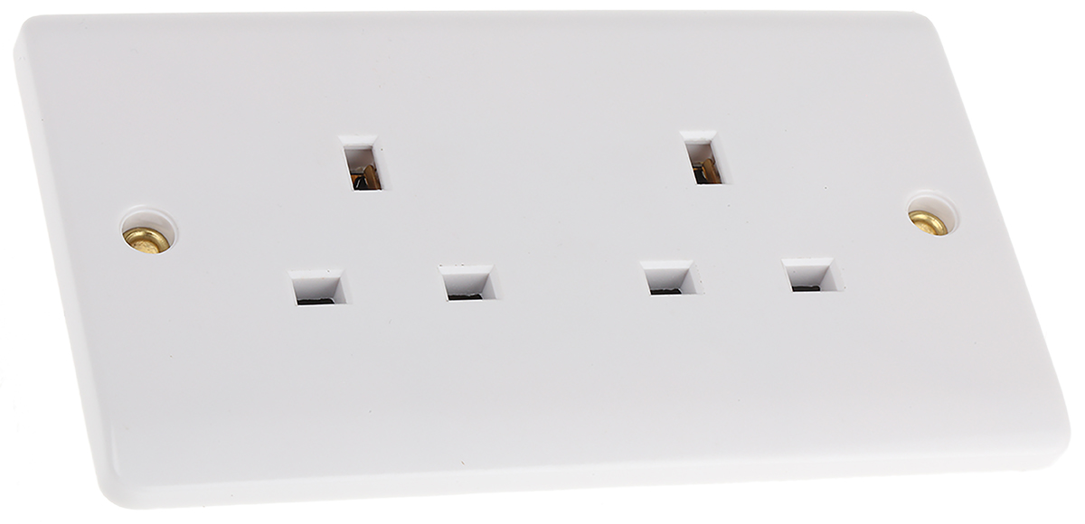 Gniazdo wtykowe podwójne Montaż wpuszczany kolor Biały W budynkach, 13A, IP20 230V ac