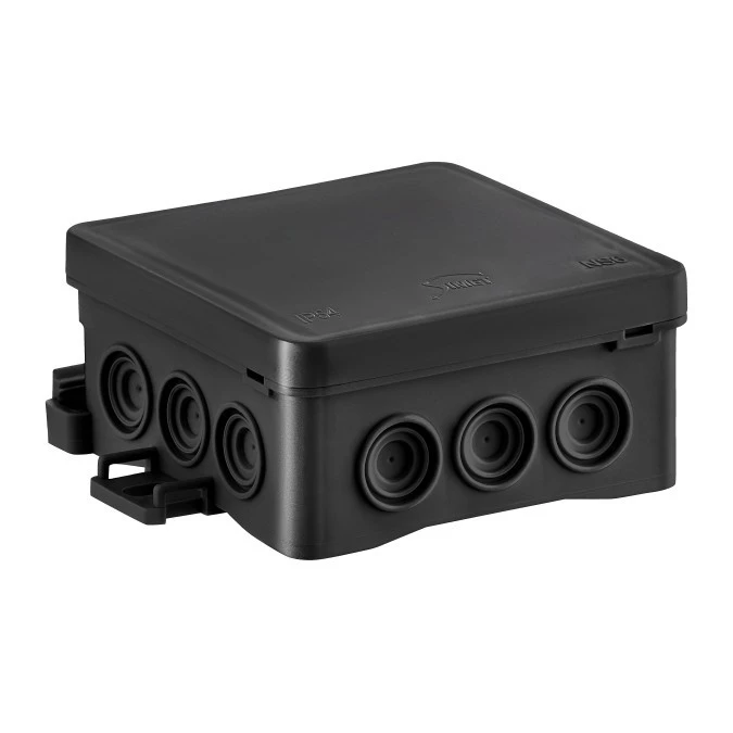 10. Puszka naścienna NS6 85x85x40 mm bezhalogenowa samogasnąca UV IP54 Fastbox&Hook czarna 35346107 SIMET 5.03