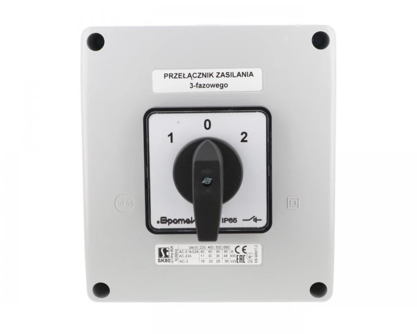 Łącznik krzywkowy 80A rozłącznik 1-0-2 3 - biegunowy w obudowie OB18 SK80-3.8380\OB18