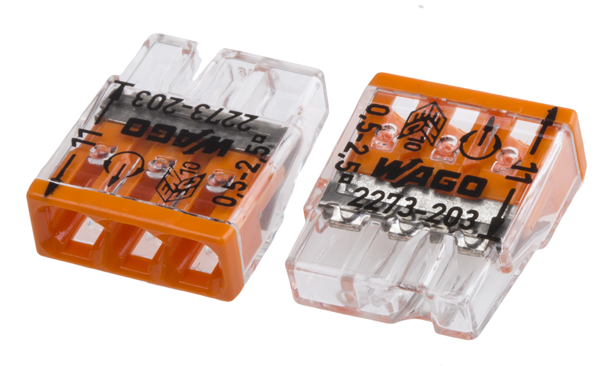 3. Złącze skrzynki przyłączowej 3-żyłowe WAGO rozmiar żyły 20 → 16 AWG Push-In Montaż na kablu 13.91