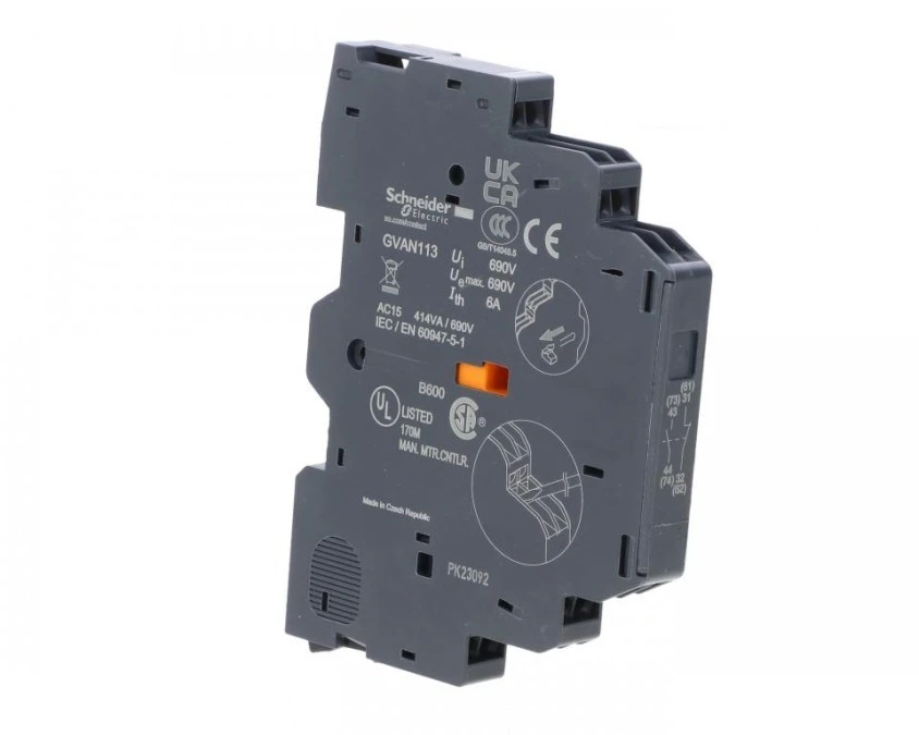 14. Blok styków pomocniczych do wyłącznika silnikowego GV2 i GV3, 1 NO+1 NC GVAN113 65.04