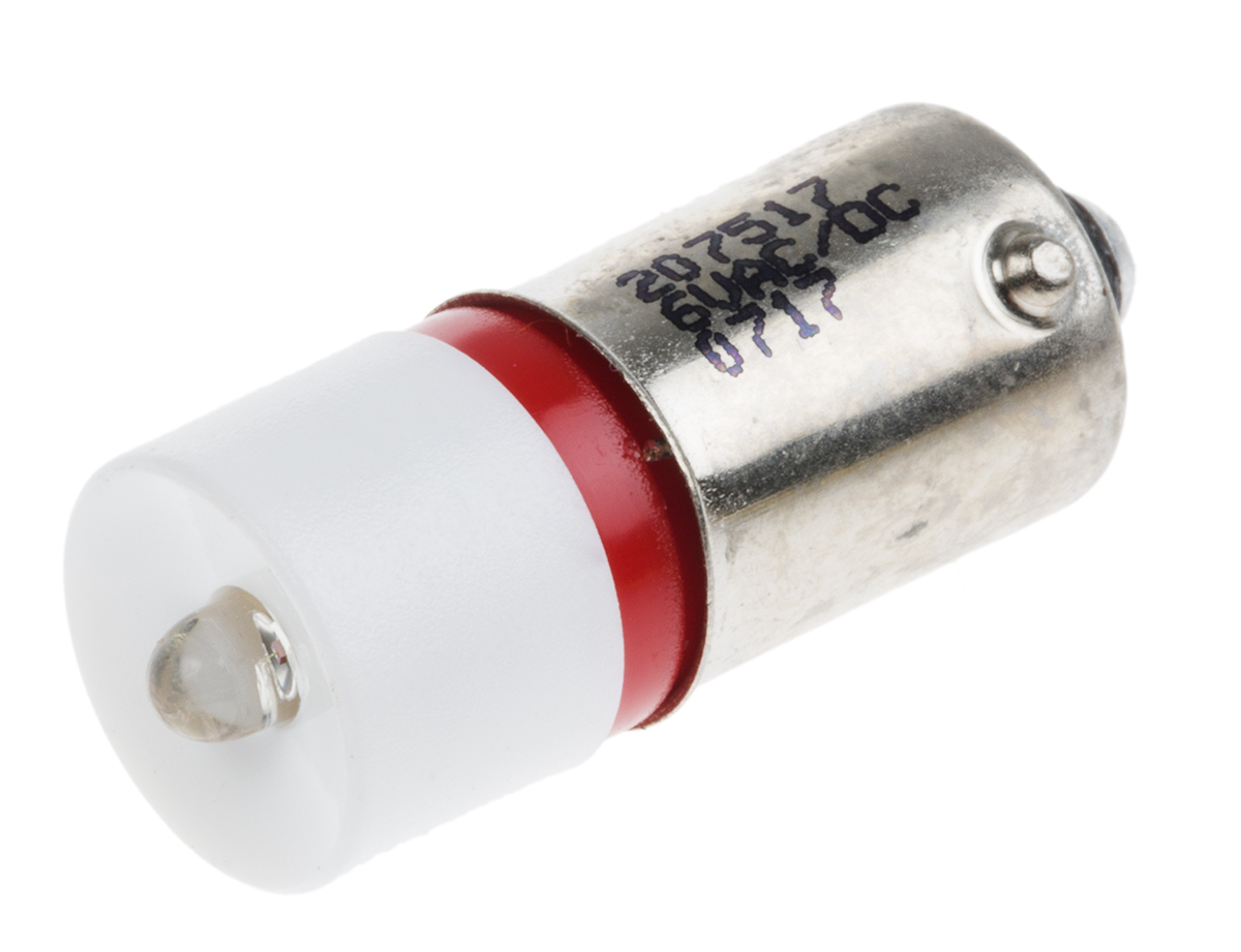 13. Lampka kontrolna Czerwony 6V ac/dc BA9s LED średnica 10mm długość 24mm 40.25