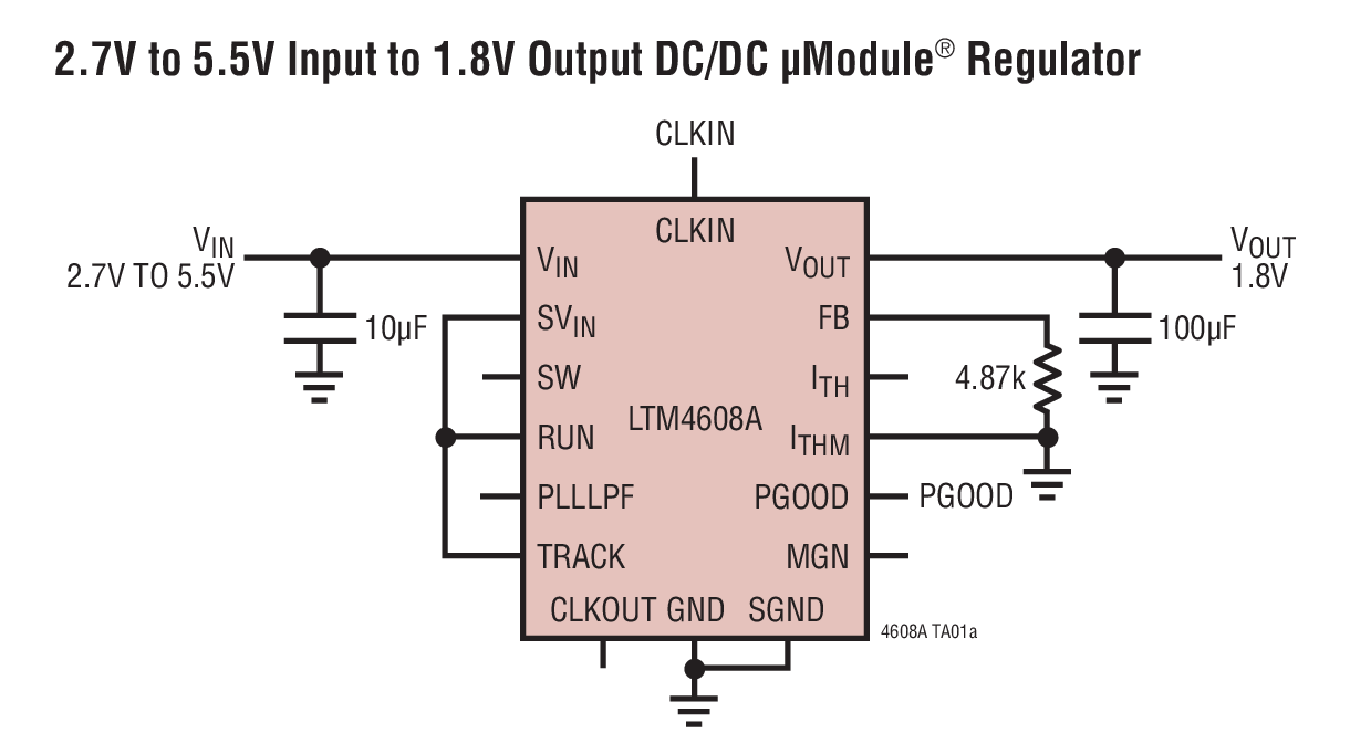 4. Low V, 8A DC/DC μModule (Power Module) Regulator with Tracking, Margining, and Frequency Synchronization Sample