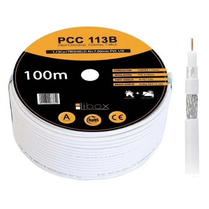 Przewód Koncentryczny Sat Rg6 1,13/4,8 Professional Premium Libox Pcc113 /100M/