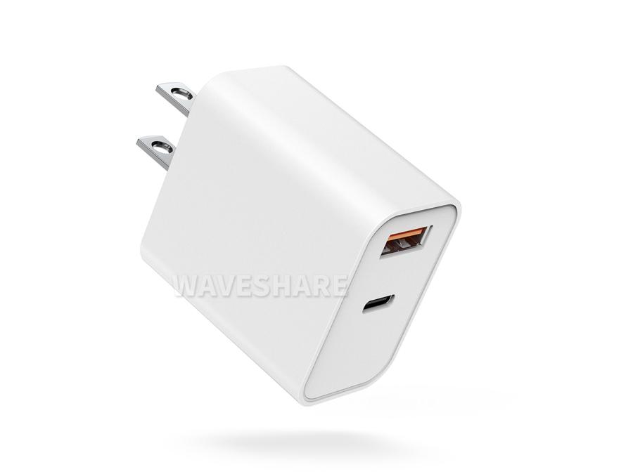 Waveshare PD30W Dual-Port Fast Charger, USB Type-A/Type-C Wall Charger Block, US Plug, intelligently adjusts the charging rate