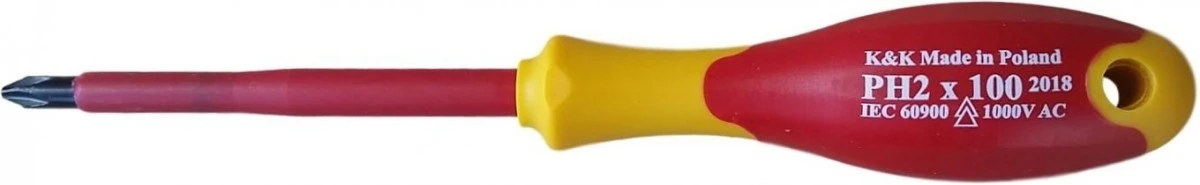 Wkrętak krzyżowy izolowany 1000V PH2x100 Narzędzia dla elektryka Śrubokręt krzyżowy izolowany 1000V do pracy pod napięciem