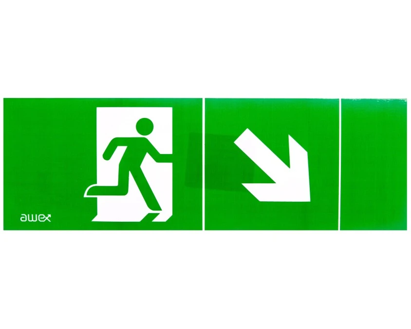 2. Piktogram Pm23 100X300 Człowiek W Drzwiach Obrotowa Strzałka Logo Awex (Iso7010) 9.52