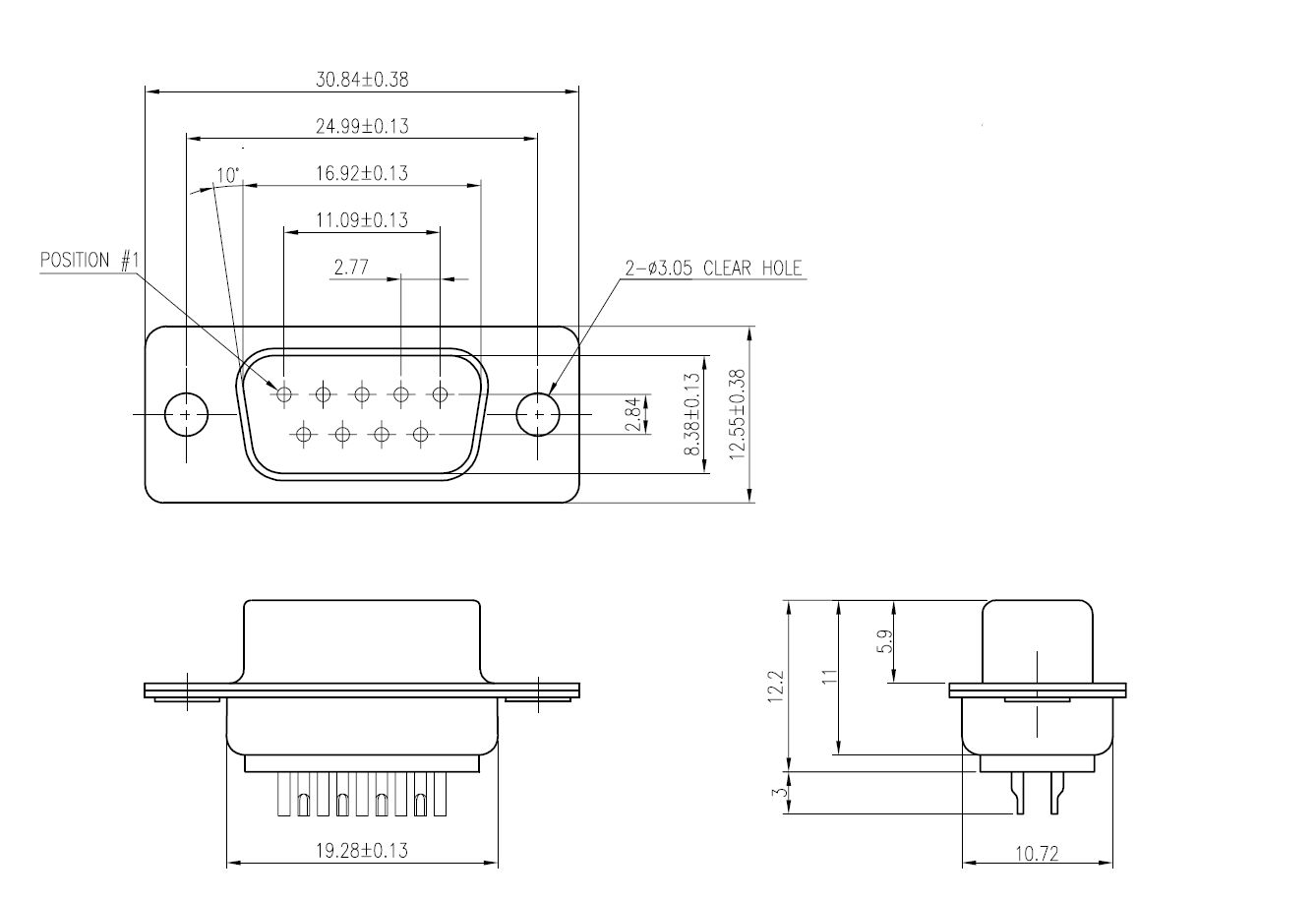 10. Złącze D-Sub 9-pinowe Męski Proste 3.71 x50