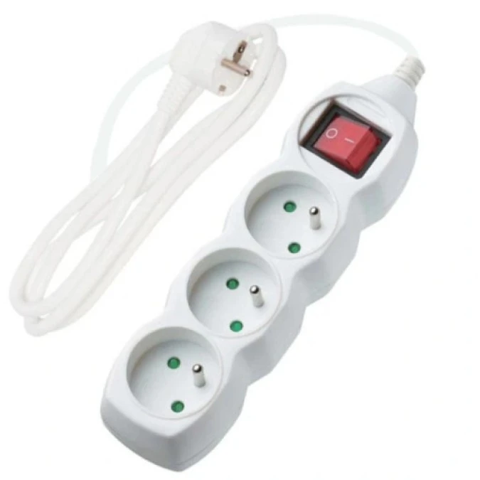 7. Przedłużacz elektryczny Listwa zasilająca na 3 gniazda 2P+Z z wyłącznikiem biała 5m 33.94