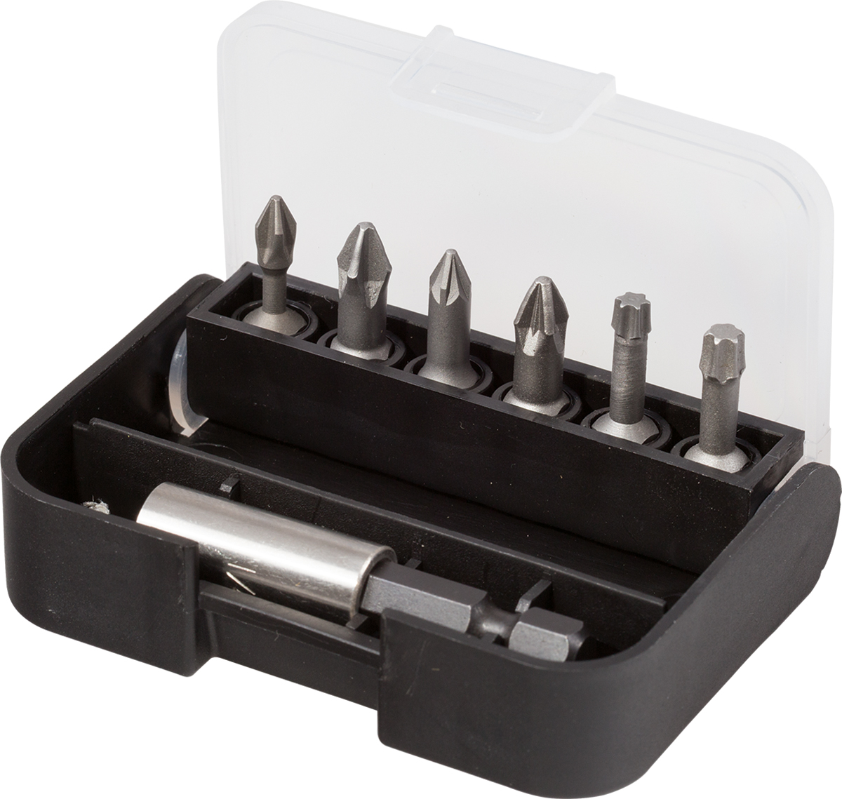 17. Zestaw końcówek do wkrętaka Phillips, Pozidriv, Star l. elementów: 7 rozmiar: PH2, PZ1, PZ2, T20, T25 Zestawy końcówek 67.27