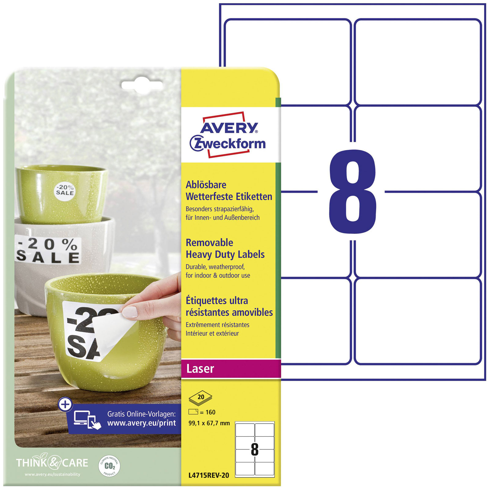 Avery-Zweckform L4715REV-20 Label film White 160 pcs Removable Laser compatible