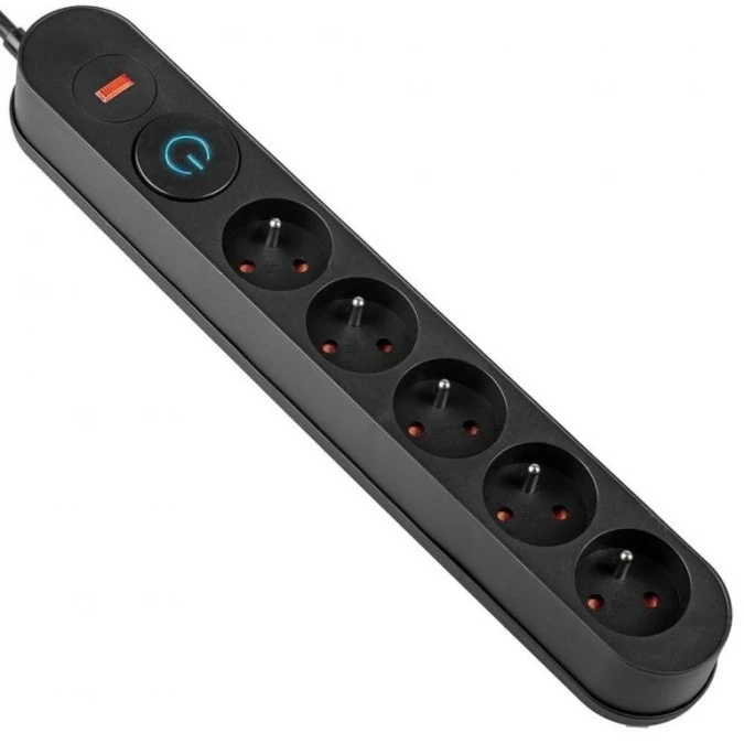 Listwa zasilająca z układem przeciwprzepięciowym, 3m 5 gniazd, włącznik czarna VA0249-3 VAYOX