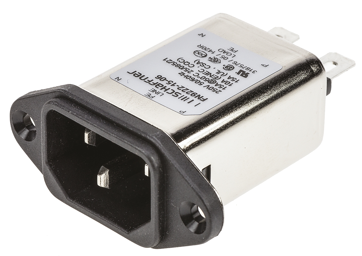 7. Gniazdo zasilające IEC z filtrem przeciwzakłóceniowymNone 15A C14 Schaffner Montaż na panelu 25.25 x120
