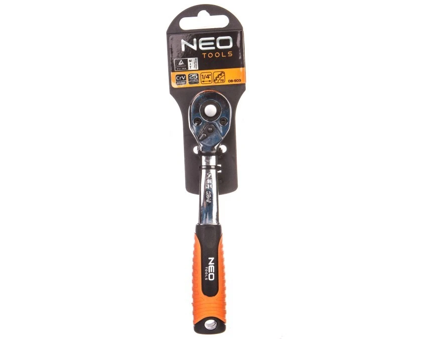 Grzechotka prosta 1/4" ze stali chromowo-wanadowej CRV 150mm NEO 08-504