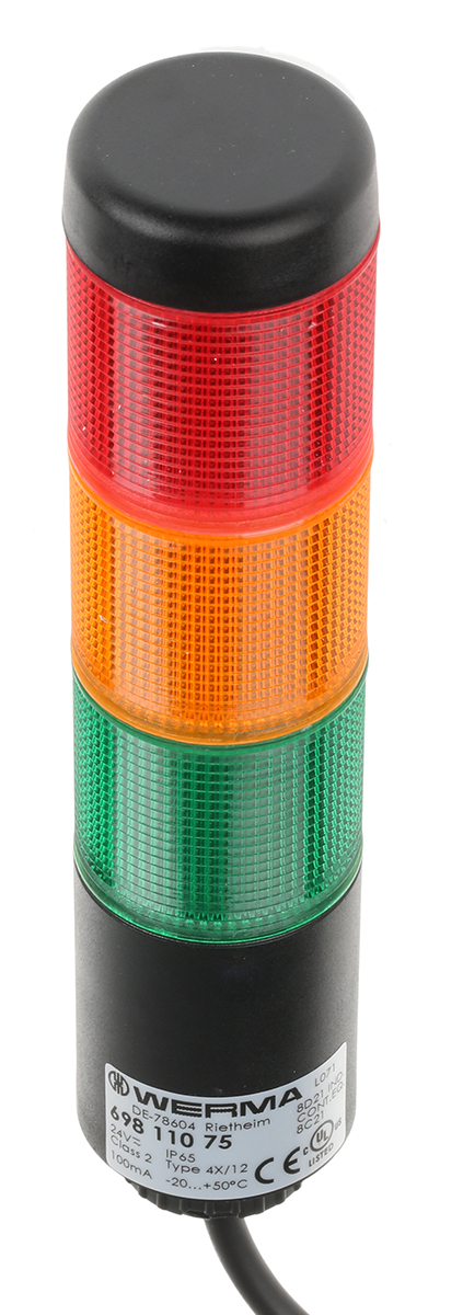 12. Wieża sygnalizacyjna Werma 3 -elementowy akustyczny Bez komponentu sygnalizatora dźwiękowego LED Czerwony/zielony/żółty 519.05
