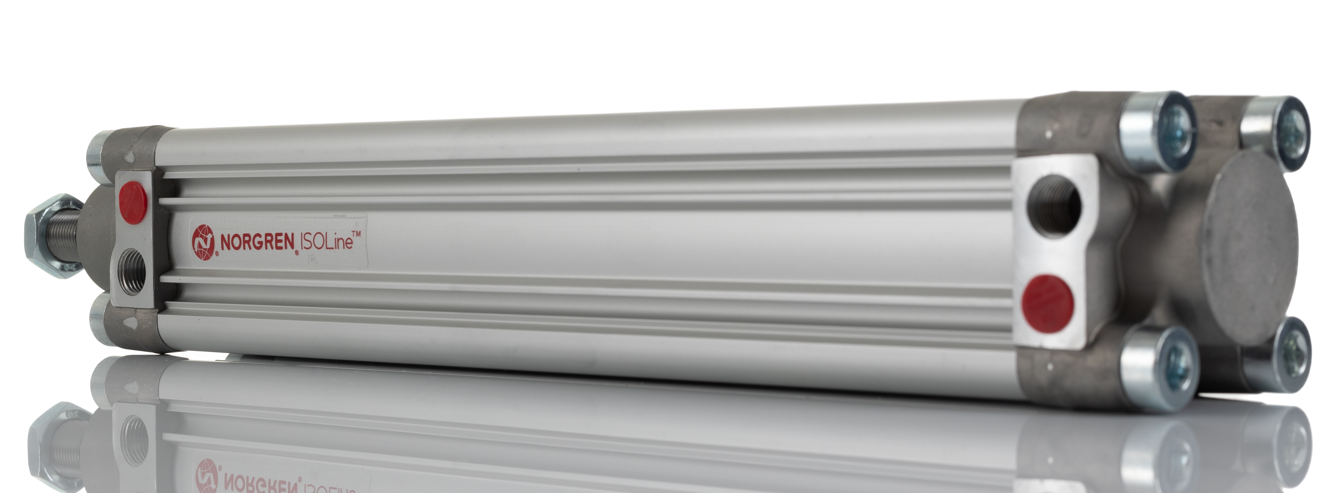 Siłownik pneumatyczny z tłoczyskiem skok: 250mm Norgren Ø 50mm dwustronnego działania Action 178.5mm z amortyzacją