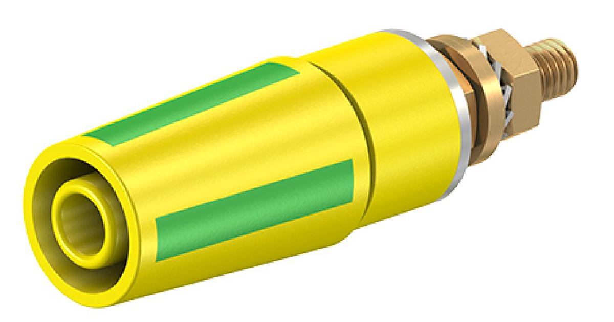 9. Gniazdo bananowe Żeński Śruba typ Gniazdo bananowe Zielony/żółty 32A Staubli rozmiar 4 mm 48.57