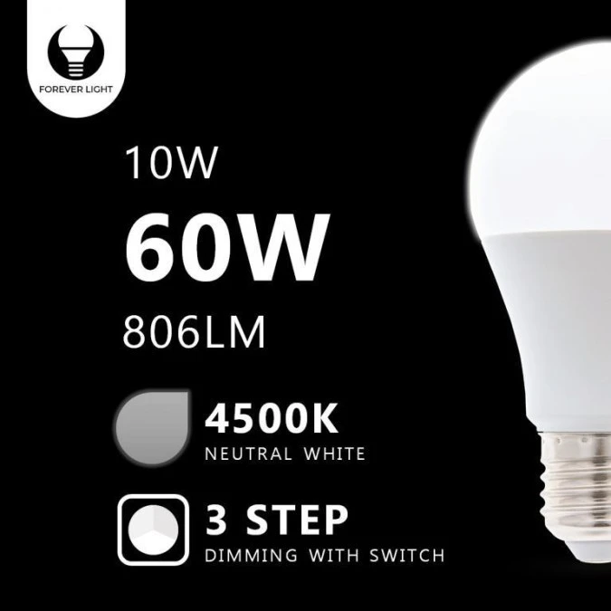 Żarówka LED E27 A60 10W 230V 4500K 806lm 3 stopniowe ściemnianie Forever Light