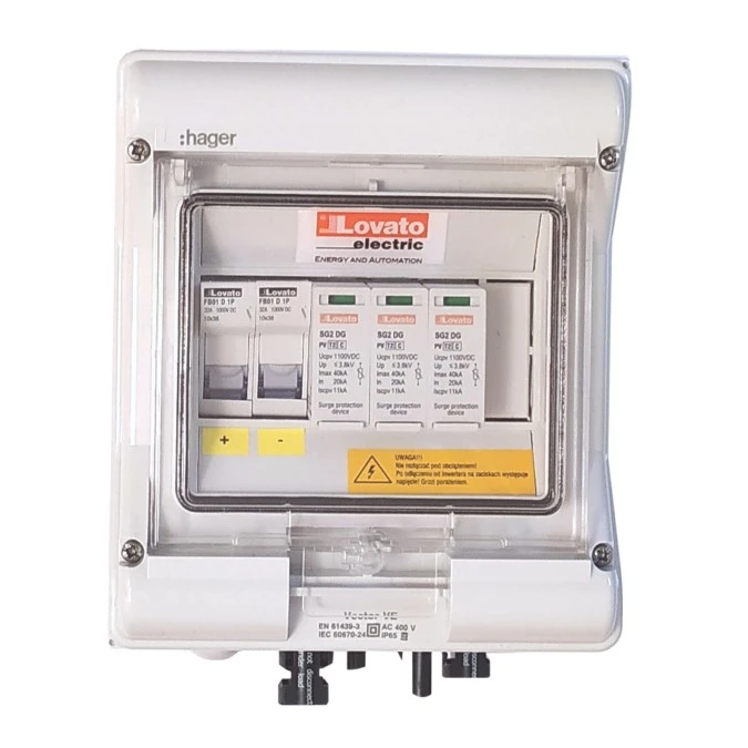Zestaw przyłaczeniowy PV IP65 1000V DC MC4 2x łańcuch PV 2x MPPT ochronniki typ 1+2 PVK00XBC22