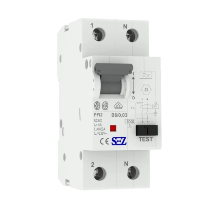 2. B6A 30mA 2P 10kA typ A Wyłącznik różnicowoprąd z członem nadprąd RCBO SEZ 0090610 98.89
