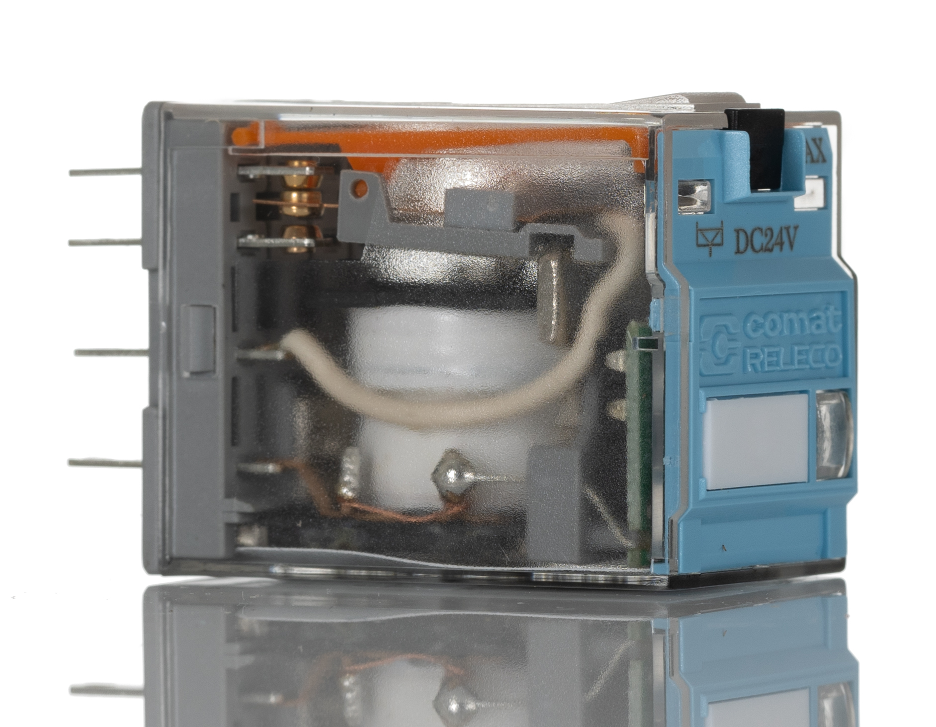 6. Przekaźnik mocy 24V dc DPDT Releco 1.2W, Wciskane 50Ω Wciskane 224.17