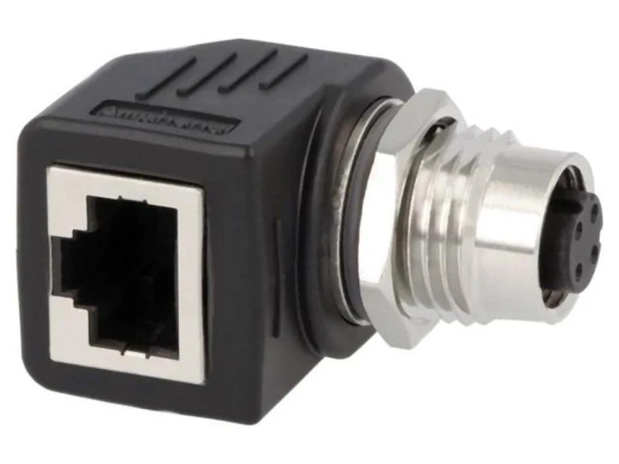 12. RJS-12D04FF-LS8001 Adapter M12 żeński,RJ45 gniazdo kod D-Ethernet 4PIN proste 81.16