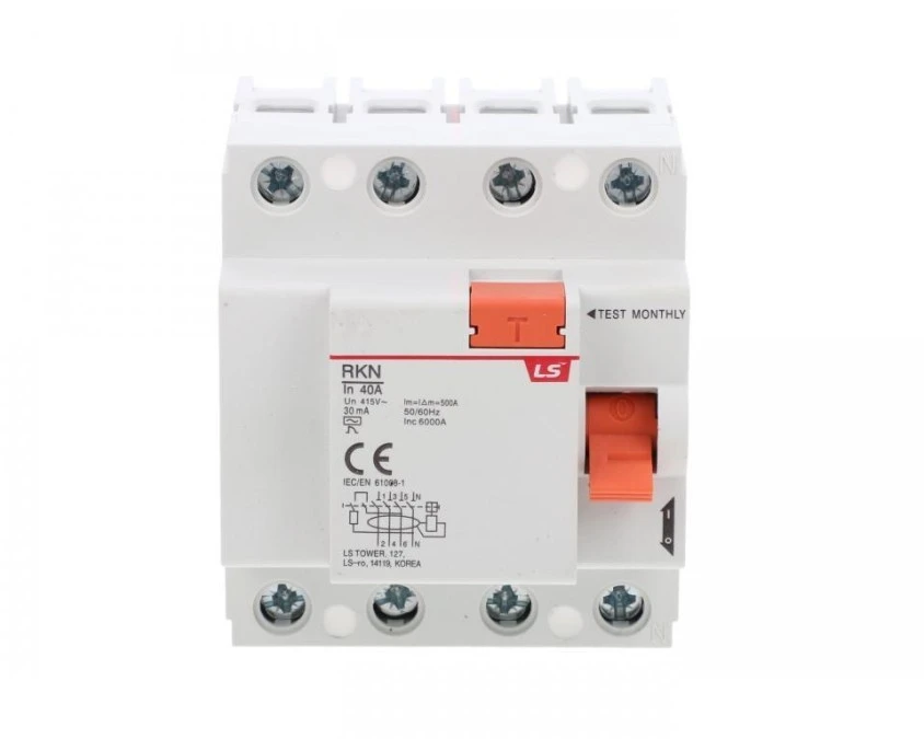 8. Wyłącznik różnicowo-prądowy LS Electric serii RKN 4P 40A, 30MA, RKN 4P 40A 30MA 100.60