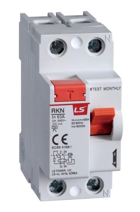 6. Wyłącznik różnicowoprądowy 2P 63A 0,1A typ AC RKN 2P 63A 100mA 76.32