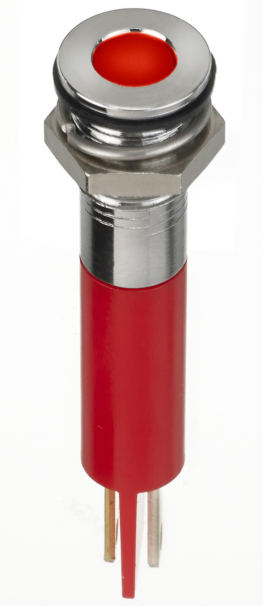 Lampka kontrolna do montażu panelowego 2V dc, czerwona 8mm LED Chrom Faston, oczko lutownicze RS PRO