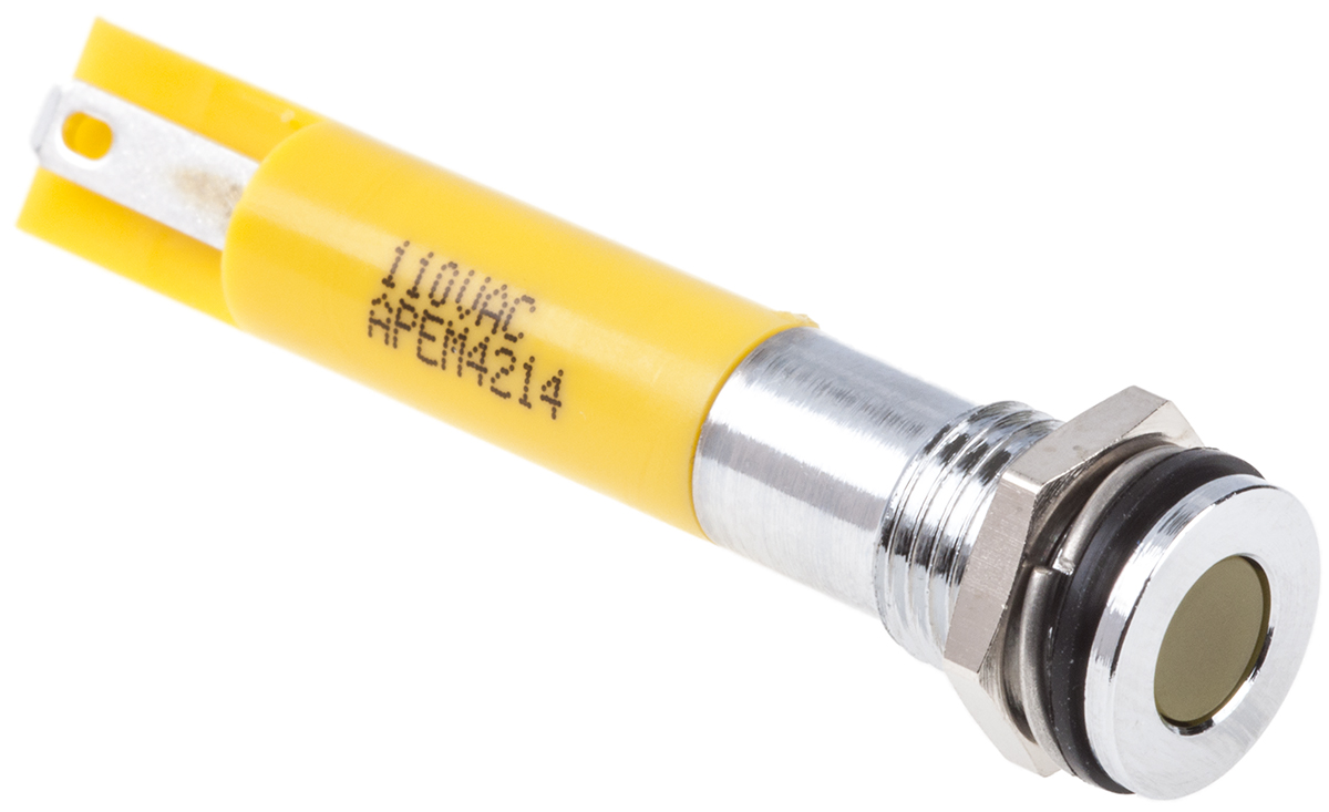 11. Lampka kontrolna do montażu panelowego 2V dc, Żółta 8mm LED Chrom Faston, oczko lutownicze RS PRO 45.61