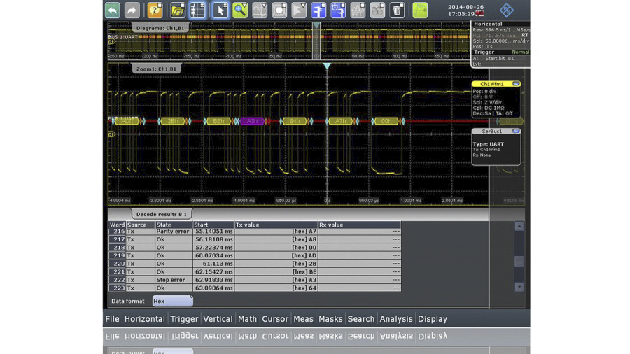 Oprogramowanie do oscyloskopów, Szeregowe wyzwalanie i dekodowanie, Oscyloskop RTC1000