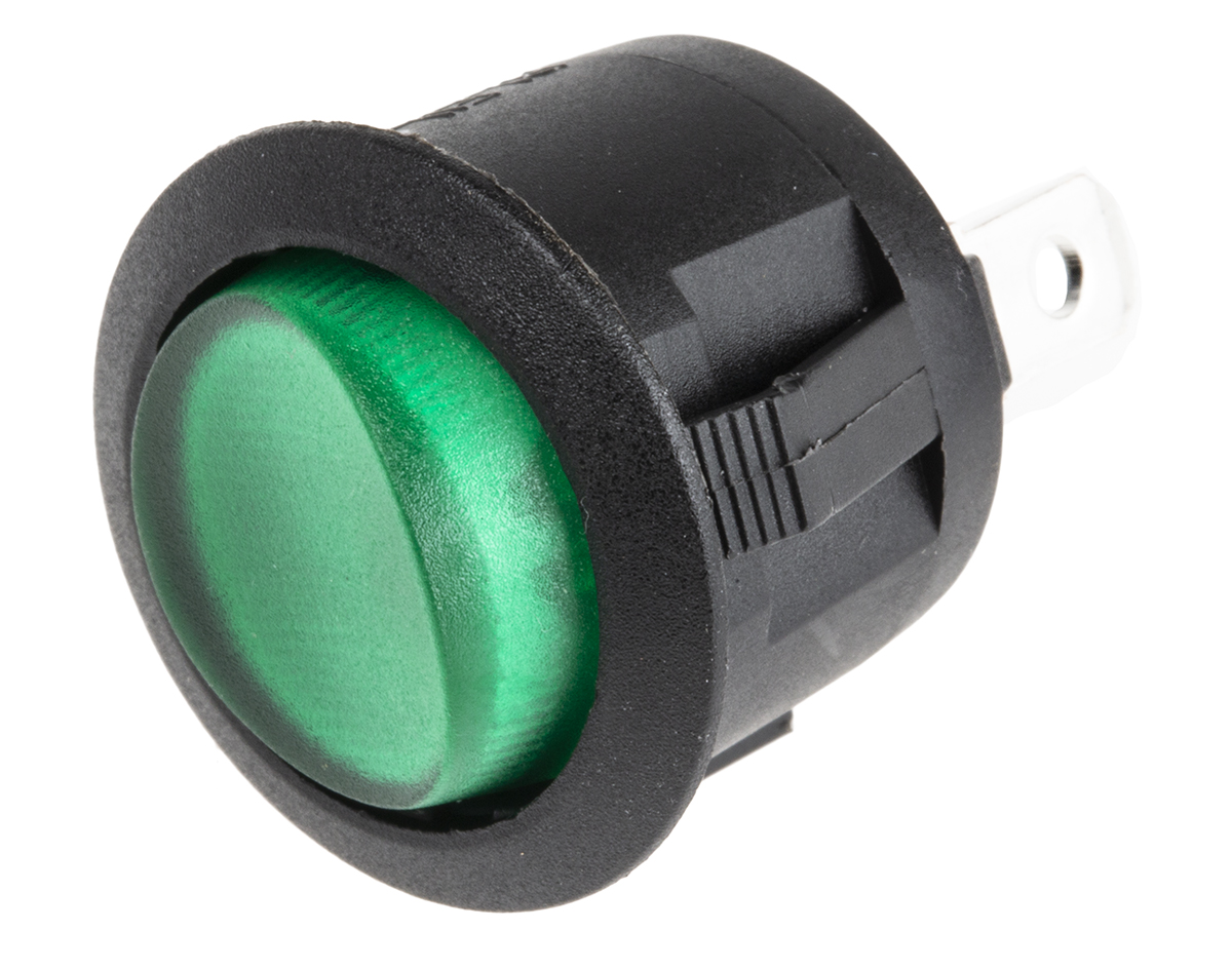 14. Przełącznik kołyskowy Wł.-wył. podświetlany 6 A SPST Zielony RS PRO 19.95