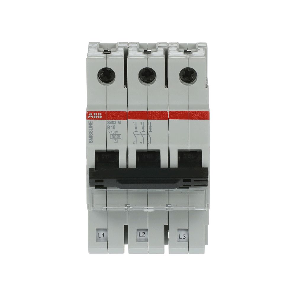 1. Wyłącznik nadprądowy MCB, Typ B, 3-biegunowy, 16A, 12V, ABB, S403M 502.20
