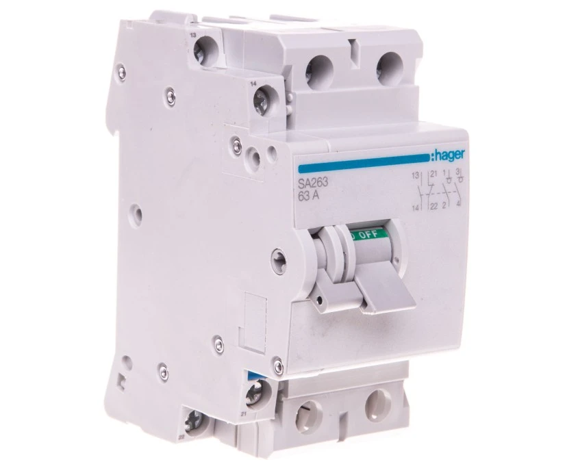 6. Rozłącznik izolacyjny 1-fazowy 2P 63A 230V AC SA263 HAGER 323.80