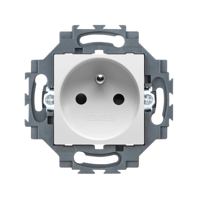 9. Gniazdo z uziemieniem 2P+E 16A z przesłonami styków, samozaciski, biały, Dahlia GW35216W 6.61