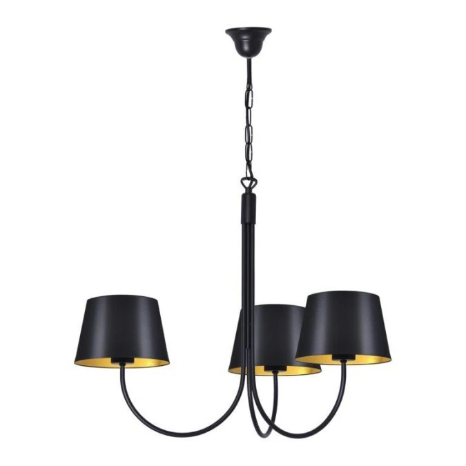 Klasyczny Żyrandol Sasto Z Kloszami Czarno-Złotymi K-4335 Kaja Lighting