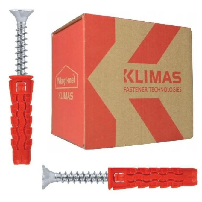 Kołki rozporowe uniwersalne SFXP 8x40mm z wkrętem PZ 5x50mm z łbem stożkowym do betonu, cegły, płyt G-K KLIMAS 100szt