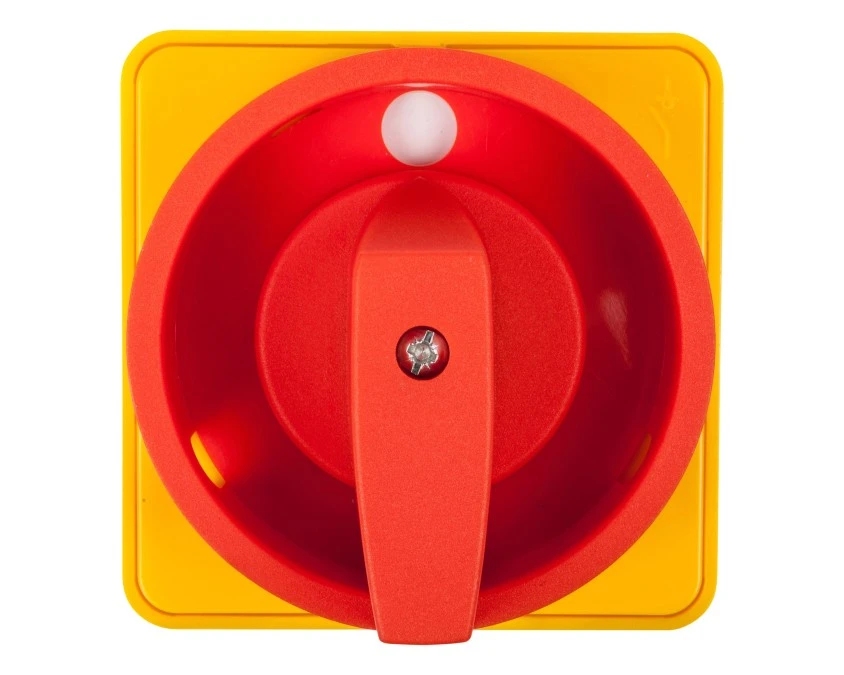 SK100-2.8211\P08 Łącznik krzywkowy, Rozłącznik 0-1 (45st), 3-biegunowy, mocowany do pulpitu, czoło żółto-czerwone, IP65
