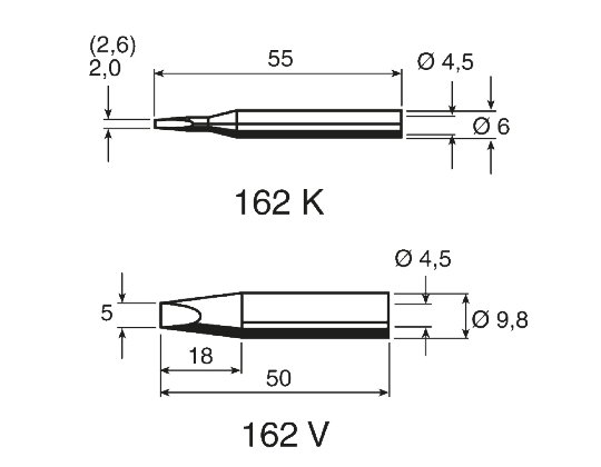3. Grot lutowniczy ołówkowy Ersa do Wielowierzchołkowy C15, końcówka 260 Dłuto 2.6 mm Serie 162 55.13
