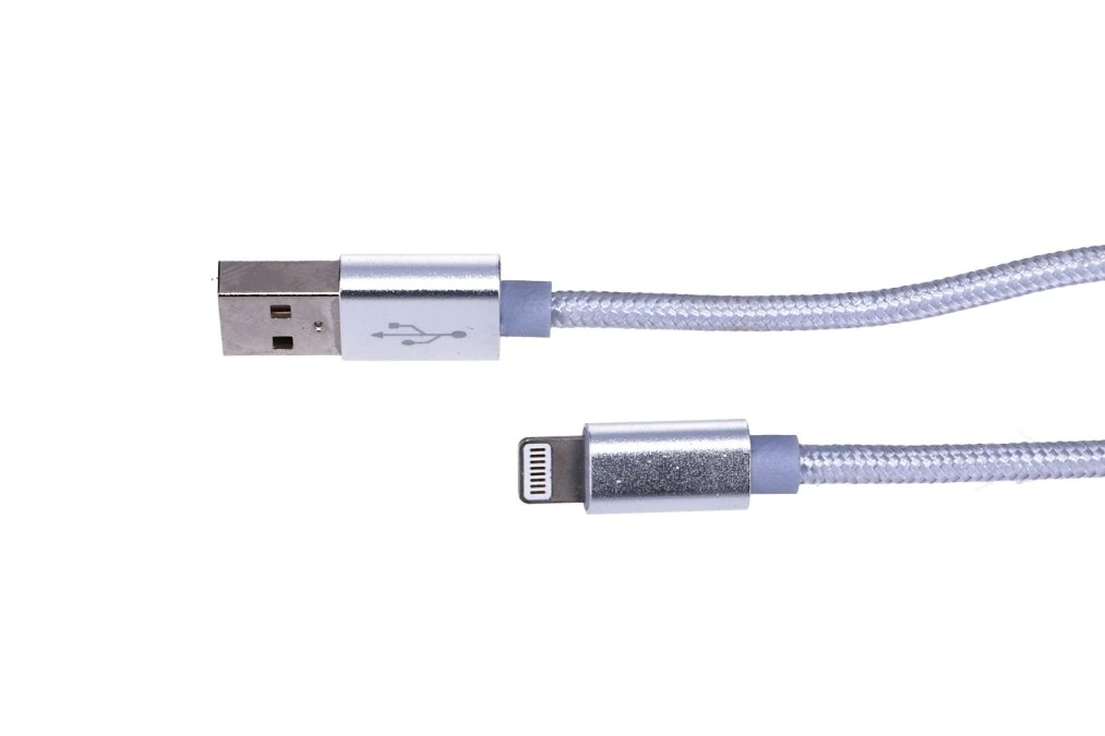 Kabel ze złączem Lightning do smartphonów IPHONE, maks. prąd 2A, wzmocniony oplotem, długość 1m, srebrny Extralink