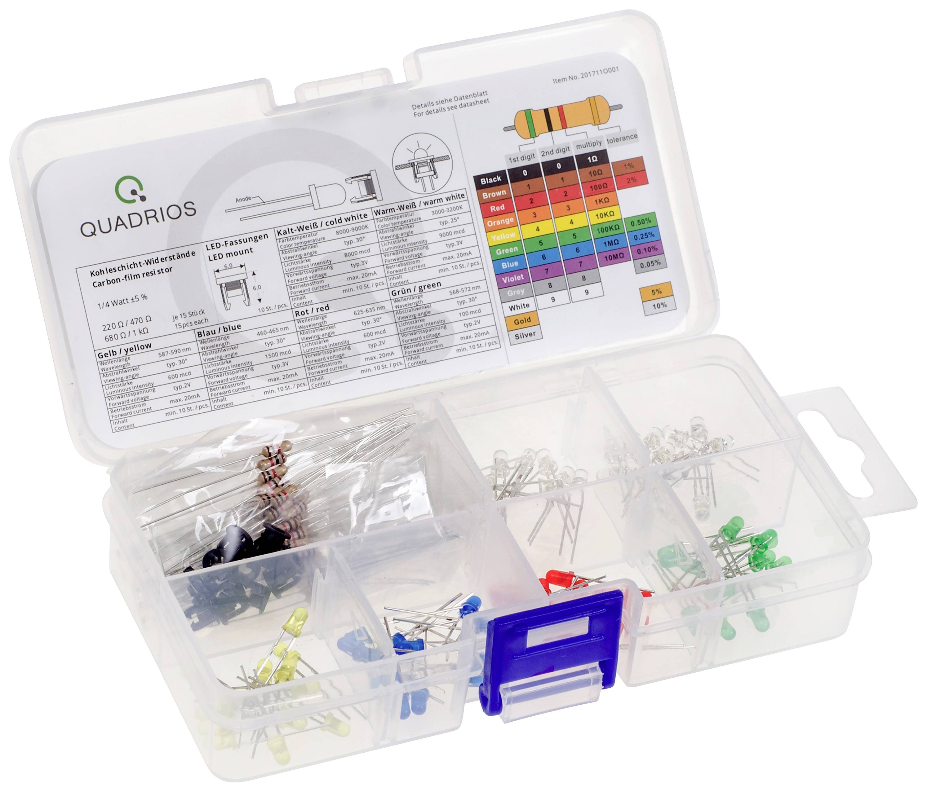 12. Quadrios Akcesoria LED czerwony, zielony, żółty, niebieski, biały, ciepły biały 3 mm 20 mA 2 V, 3 V 37.89