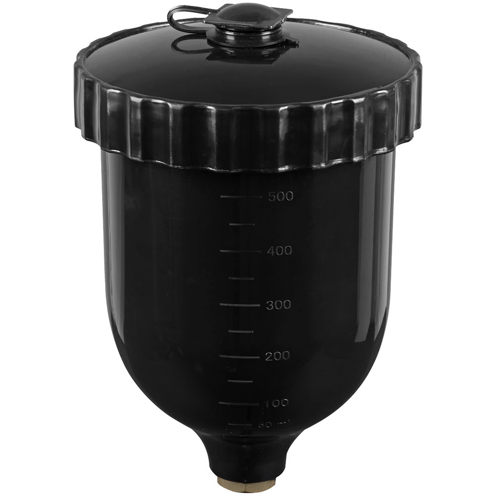 6. Sealey PC02 UV Paint Spray Gun Pot with Brass Fitting 600ml - Black 30.10