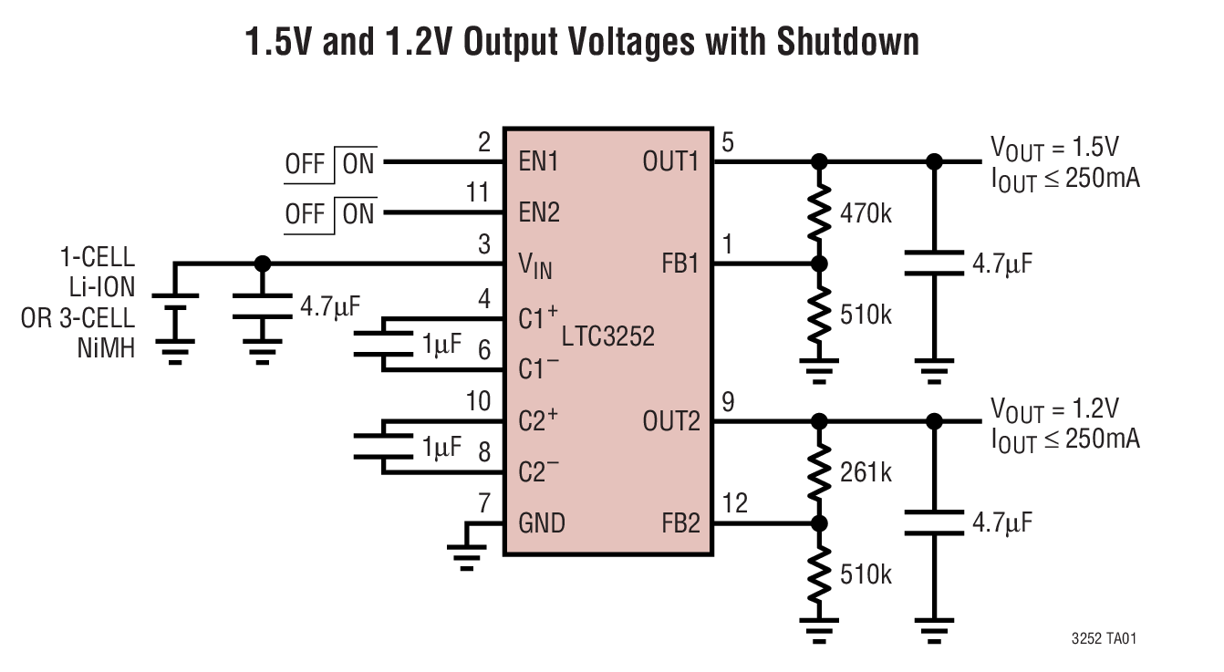 15. Dual, Low Noise, Inductorless Step-Down DC/DC Converter Sample